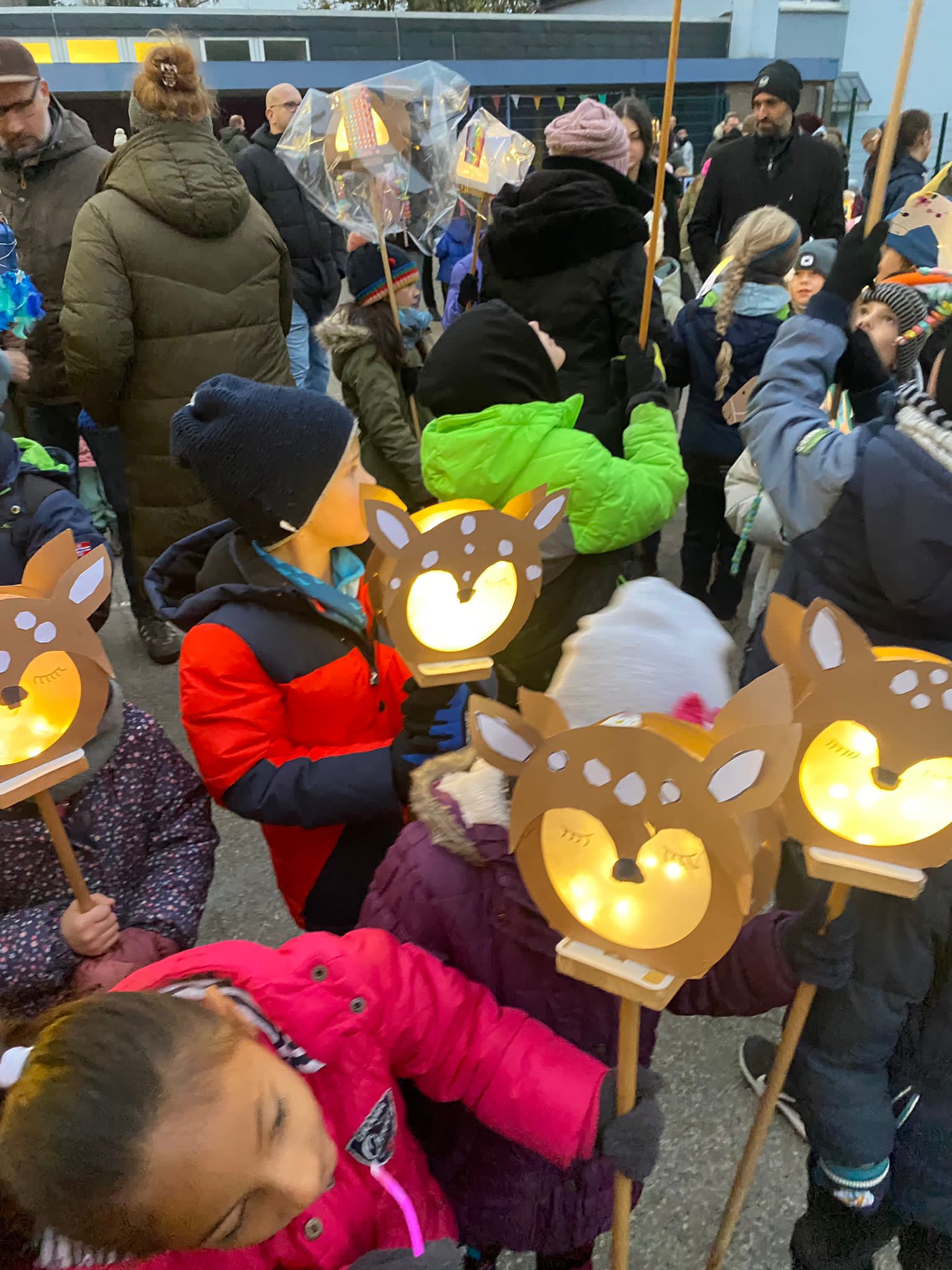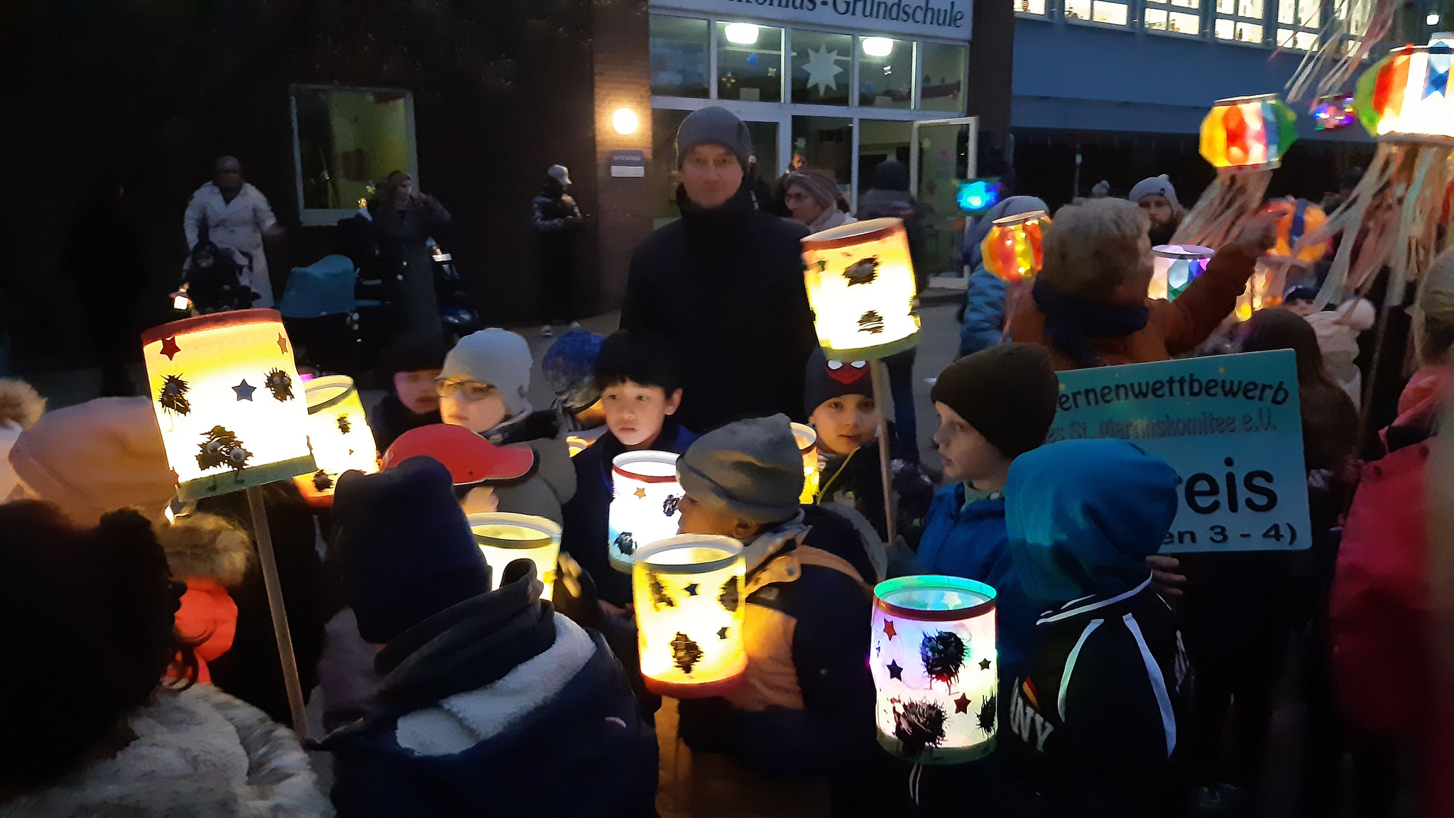 Zum Abschluss erklangen das Martinslied und das Heimatlied, bevor wir zur Schule zurück zogen, wo in jeder Klasse die traditionellen St. Martinstüten warteten.