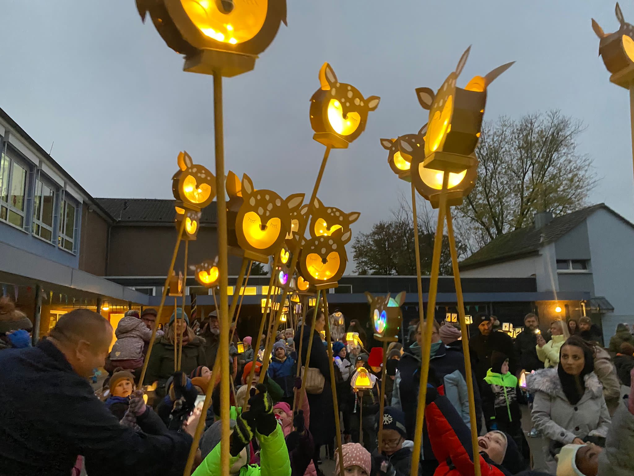 Am Freitag, dem 08.11.2024 zogen wir mit St. Martin wieder singend durch die Straßen Kevelaers. In allen Klassen wurde lange im Vorfeld bunte Laternen gebastelt und fleißig St. Martinslieder geübt.
